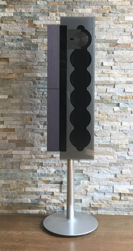 Enhance your living space with the iconic Bang & Olufsen BeoSound 9000 Mark 3, elegantly mounted on a contemporary floorstand. This legendary stereo system is celebrated for its distinctive design and exceptional sound quality, offering a rich, immersive listening experience.